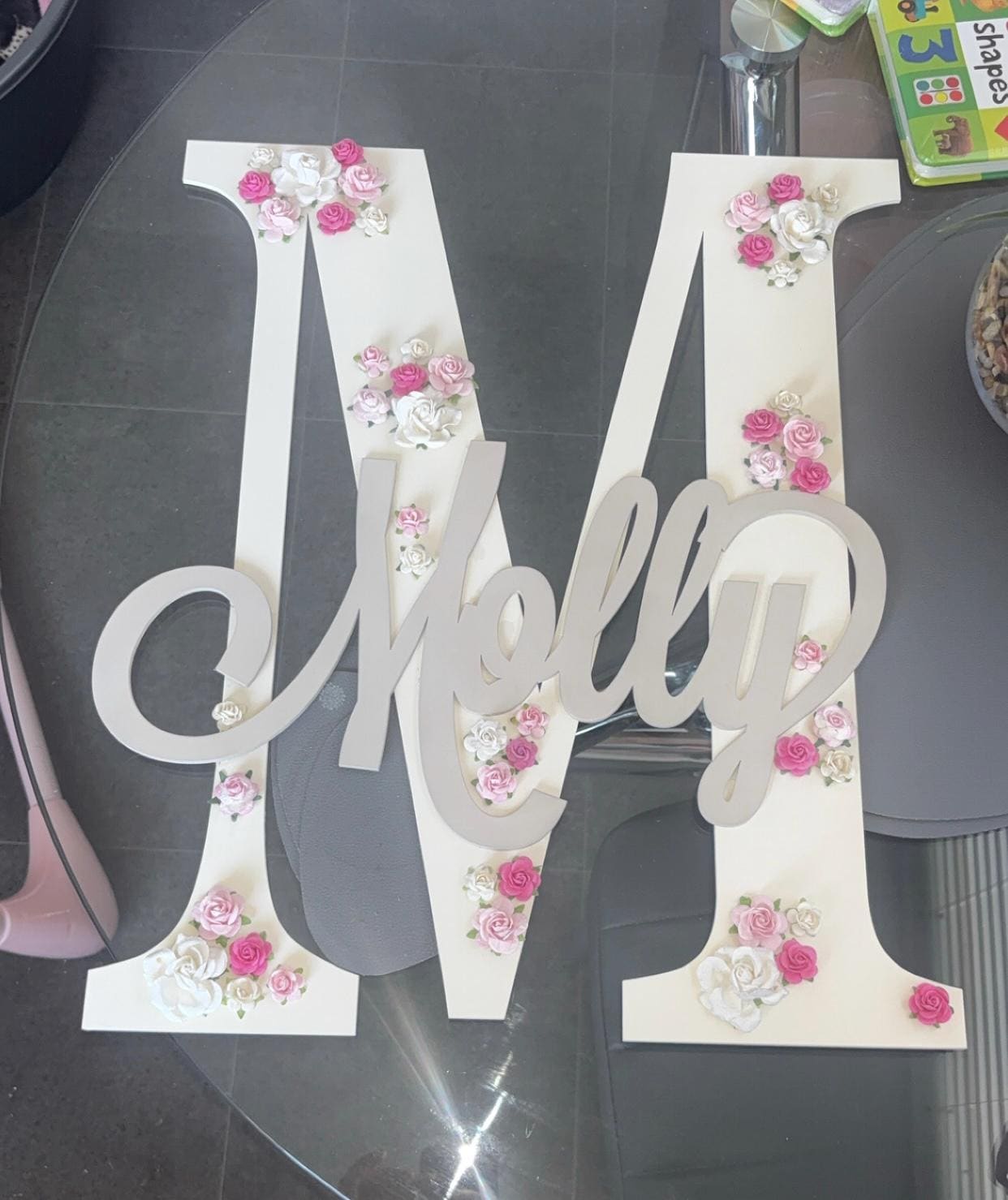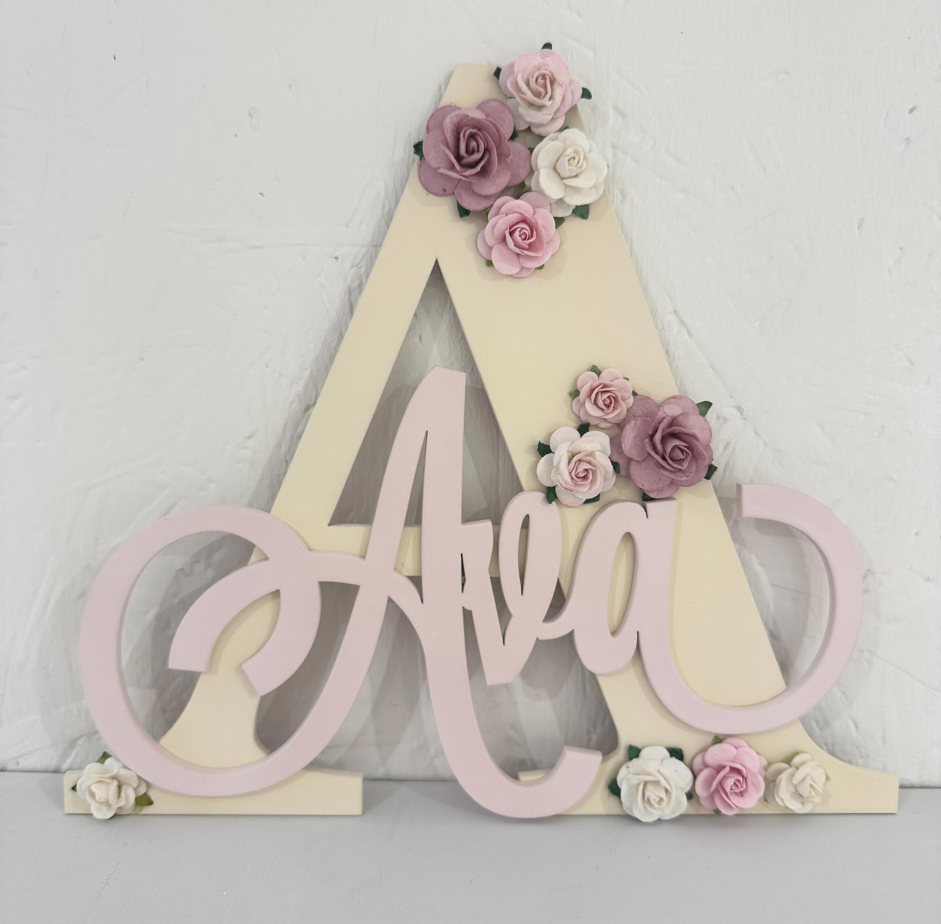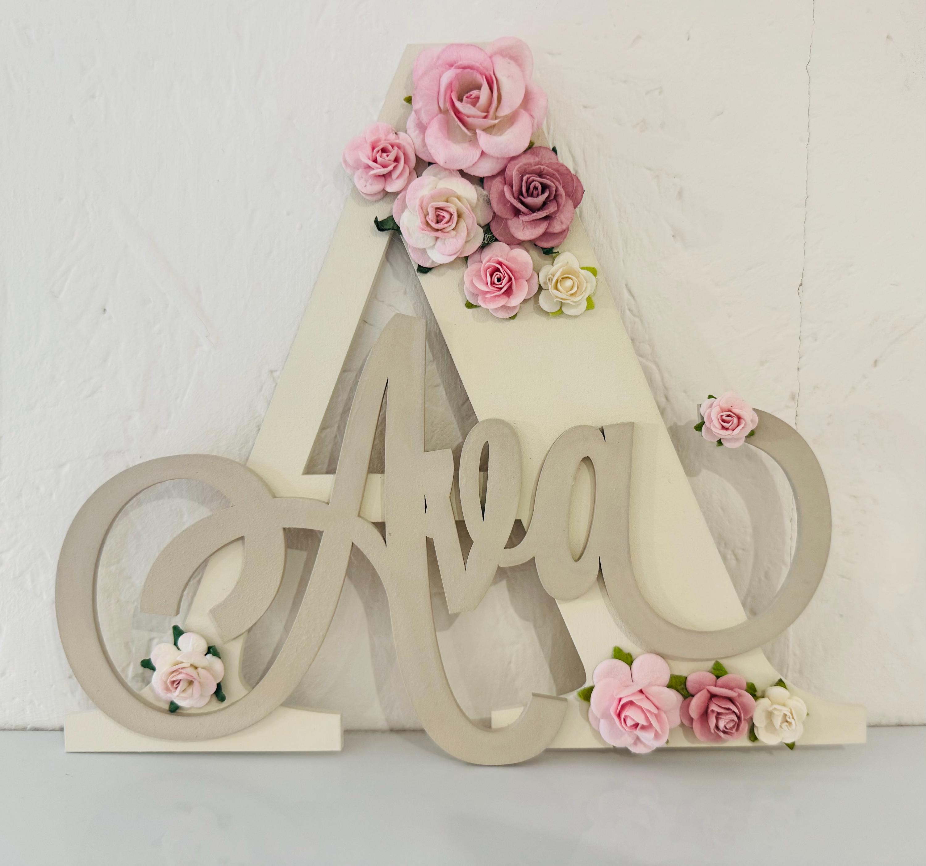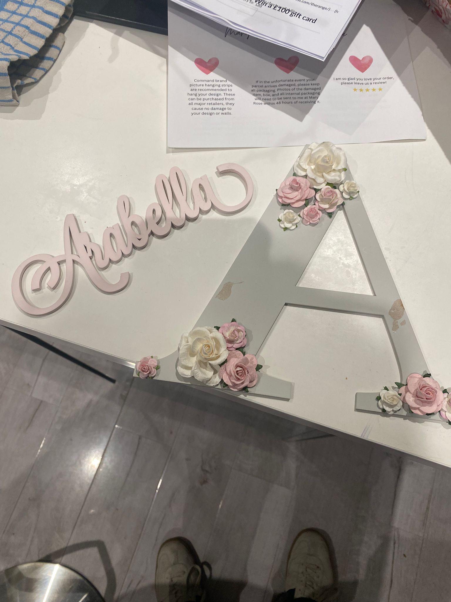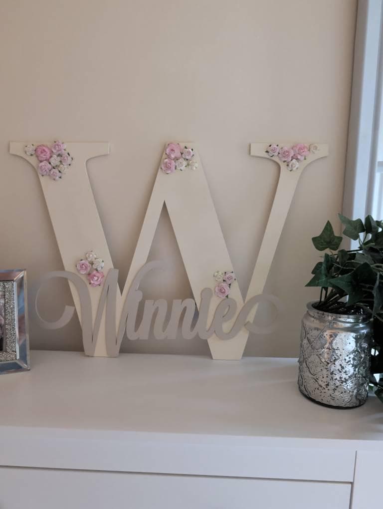 My personalised nursery letter flower letter is a stunning addition to any room, available to suit any home decor. It's an ideal new baby gift, a centre piece for a baby shower, stunning wall art for nursery decor. Limited on space and can't fit one of my flower wooden names on your wall then this is the alternative and solution and the perfect modern personalised decor.