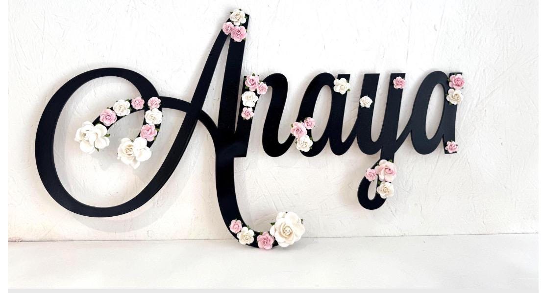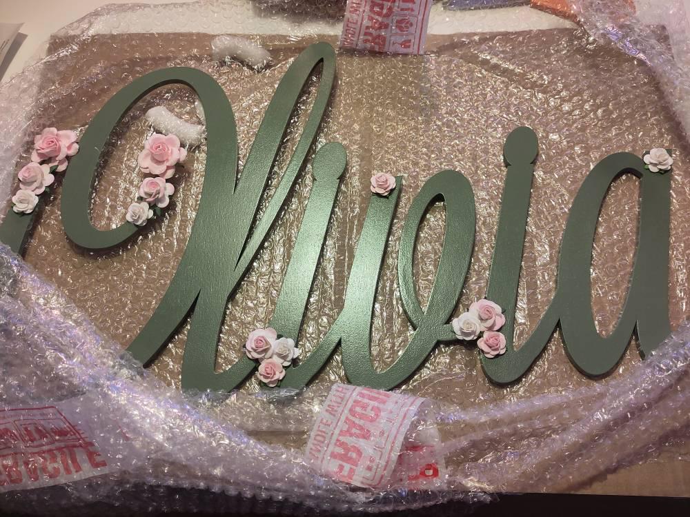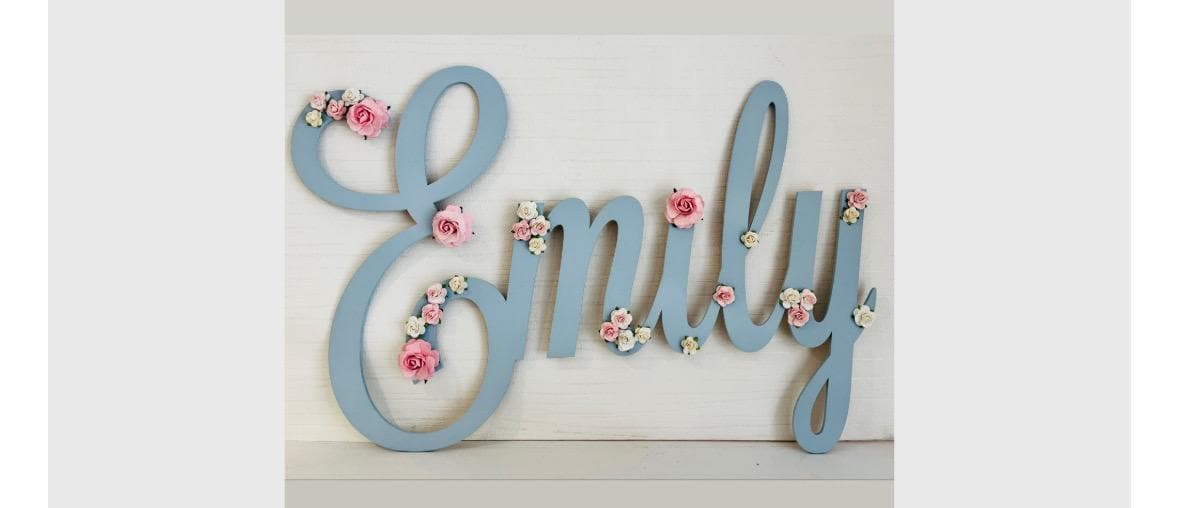 A Personalised large name sign made to order with beautiful floral details for a soft, feminine touch.