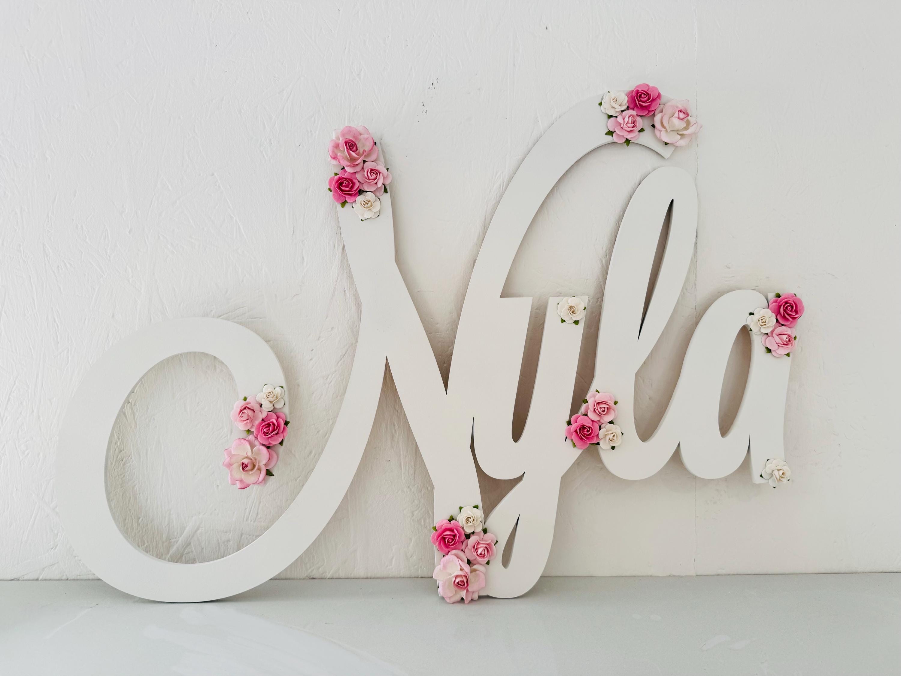 Perfect as girls nursery art or a striking large flower name sign, this piece doubles as both decor and keepsake. Whether you’re looking for large name signs to complete your nursery wall art or a thoughtful present for a loved one, this design makes an unforgettable new baby gift, christening gift, or baby shower gift.