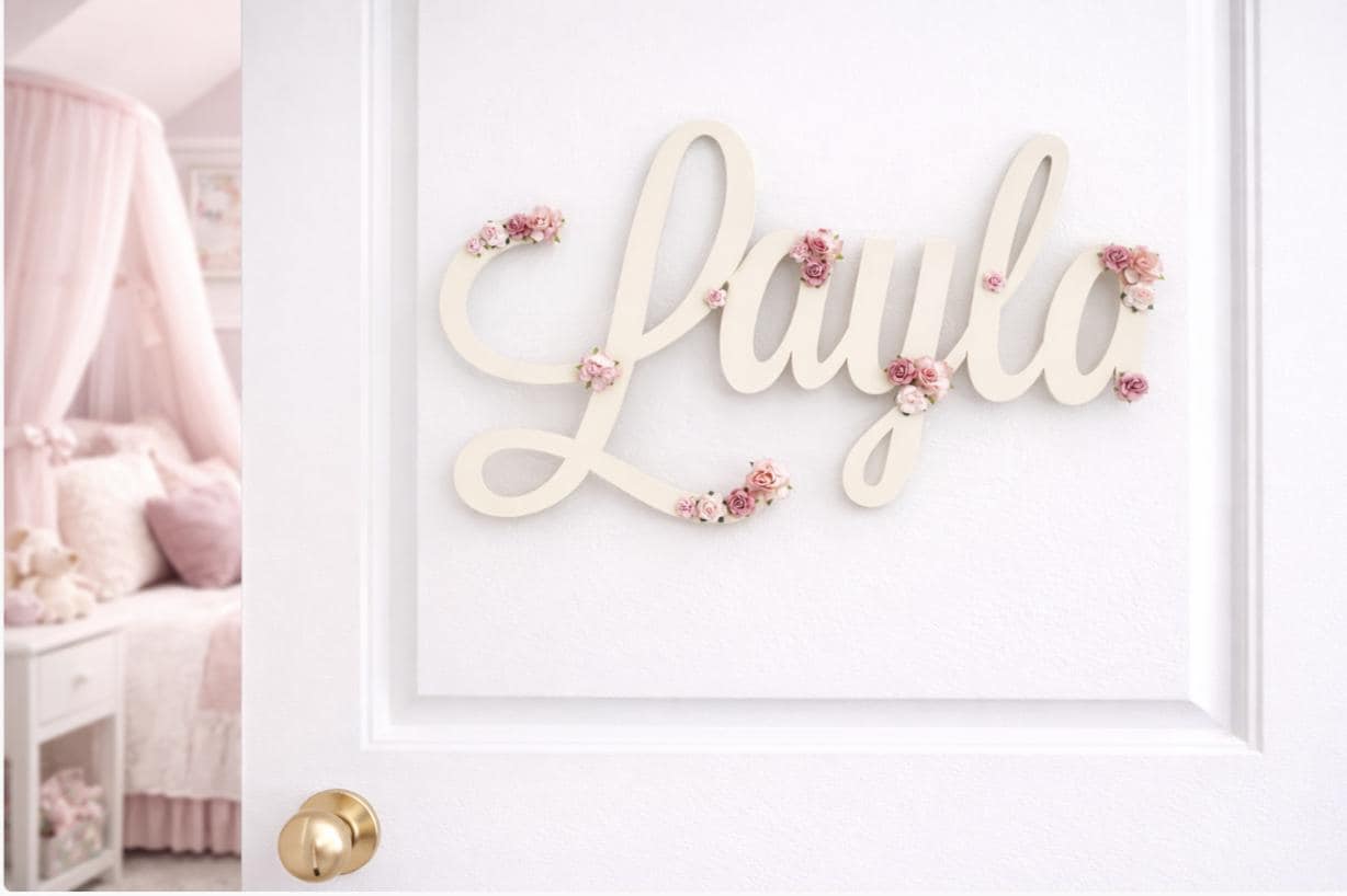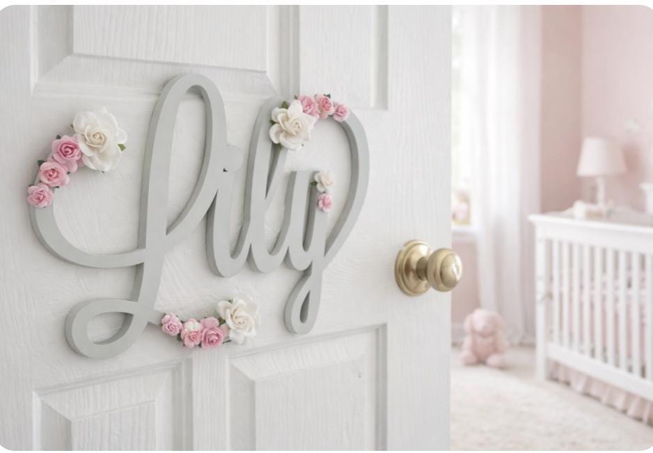 Perfect as girls nursery art or a name sign, this piece doubles as both decor and keepsake. Whether you’re looking for large name signs to complete your nursery wall art or a thoughtful present for a loved one, this design makes an unforgettable new baby gift, christening gift, or baby shower gift. Perfect way to personalise a bedroom door with our names used as door signs.