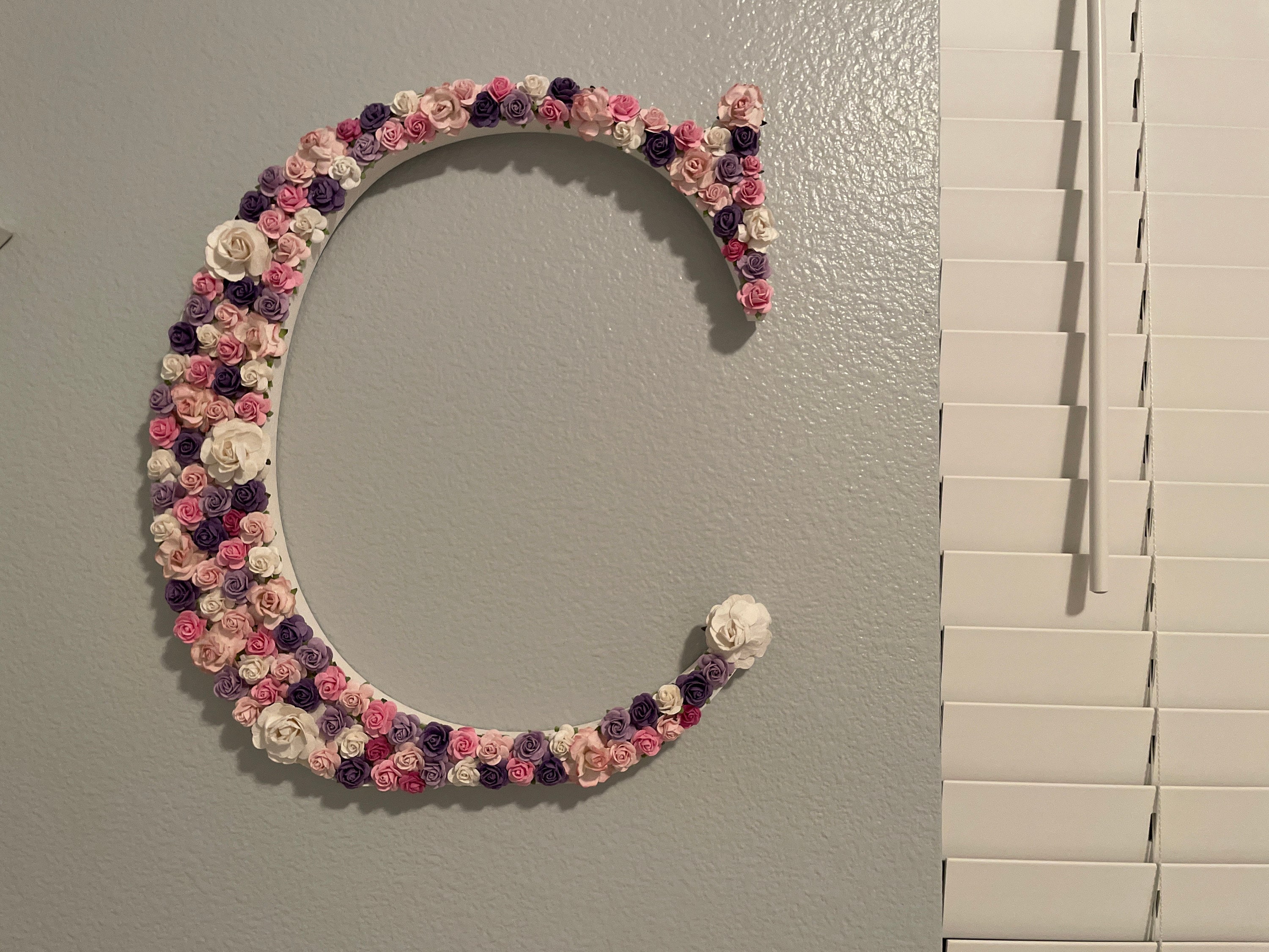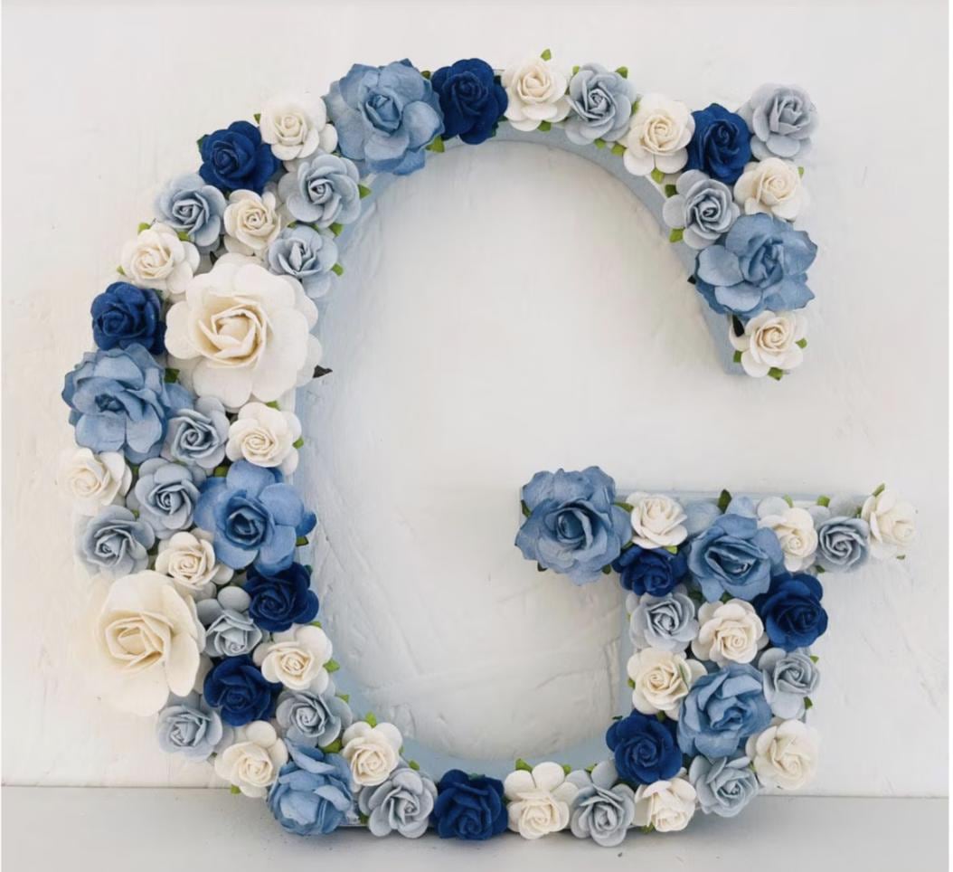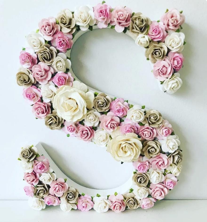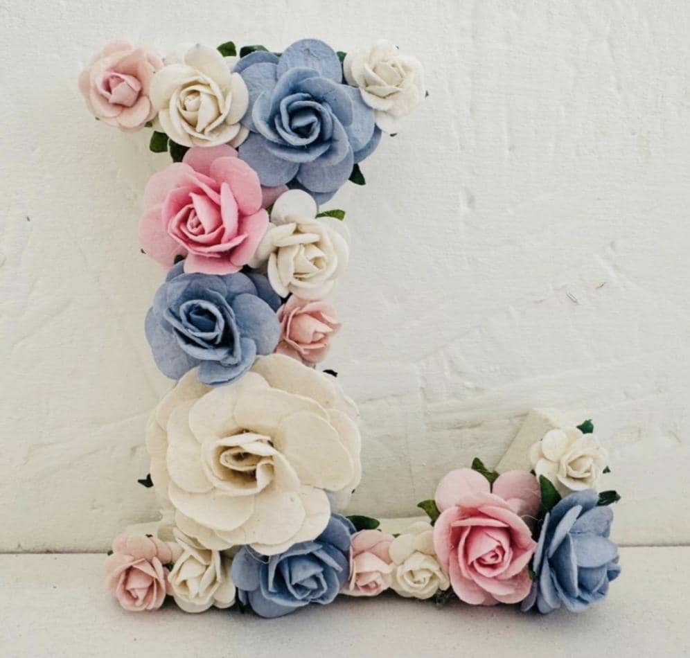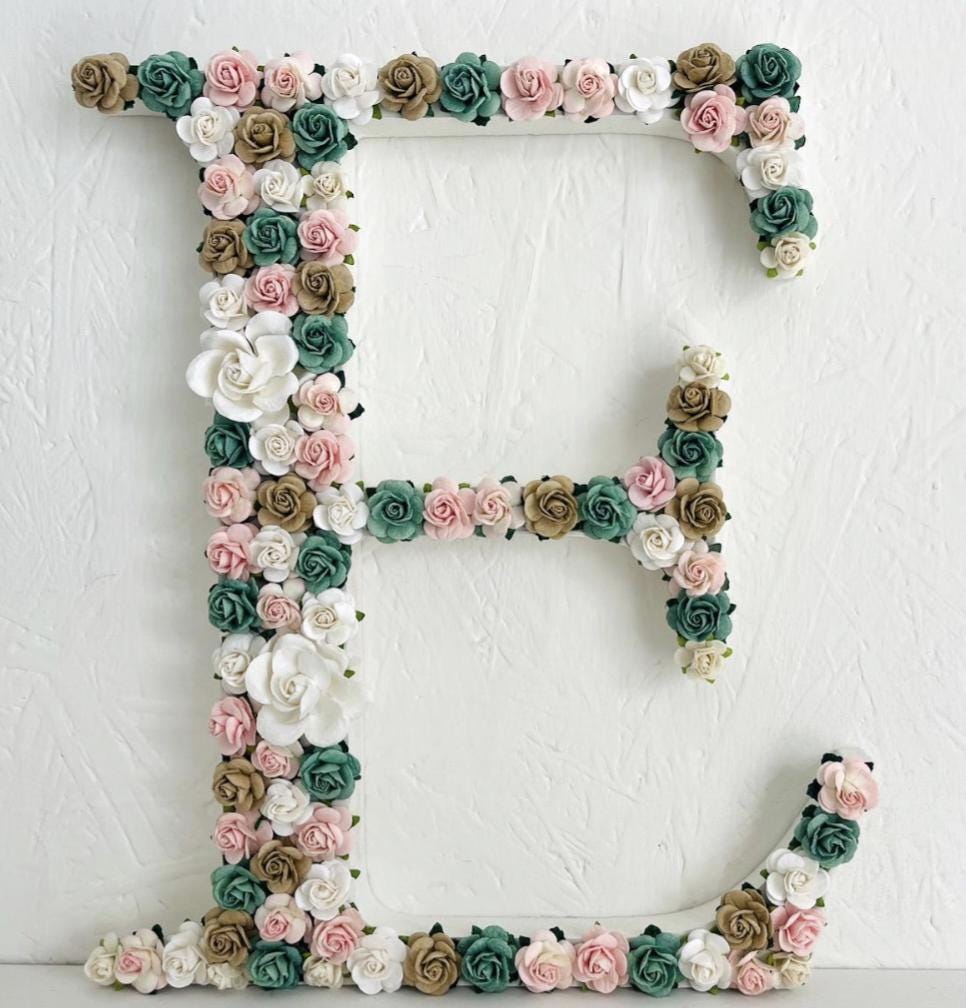 Create a serene and elegant atmosphere in your little one’s room with my pastel floral letters, handcrafted with love and care. This custom wooden name sign features soft dusty rose, blush pink, ivory, and grey paper flowers, carefully arranged on sturdy letters to bring a touch of floral charm to any wall or shelf. Any colour combination can be designed and created as bespoke and made to order.