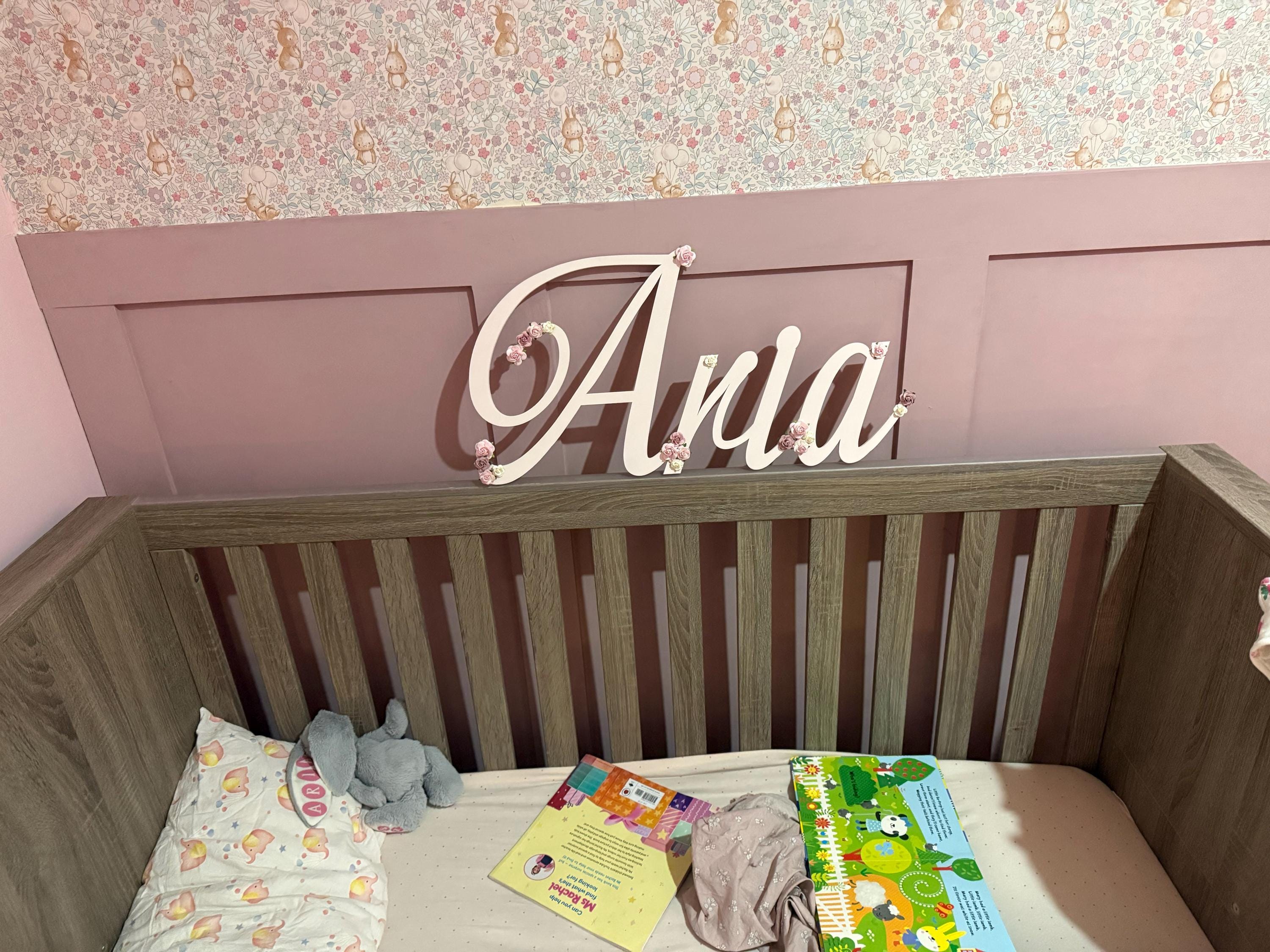 Bring a touch of beauty and personalisation to your little one’s room with our wooden name sign, designed with delicate flowers for a charming statement piece. Each sign is carefully crafted from durable MDF wood and finished to create a stunning piece of nursery wall art that will be treasured for years.