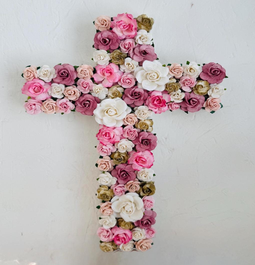 All my crosses are made to order and bespoke and any colour combination can be created. Please ensure personalisation box is filled in with rose colour request.