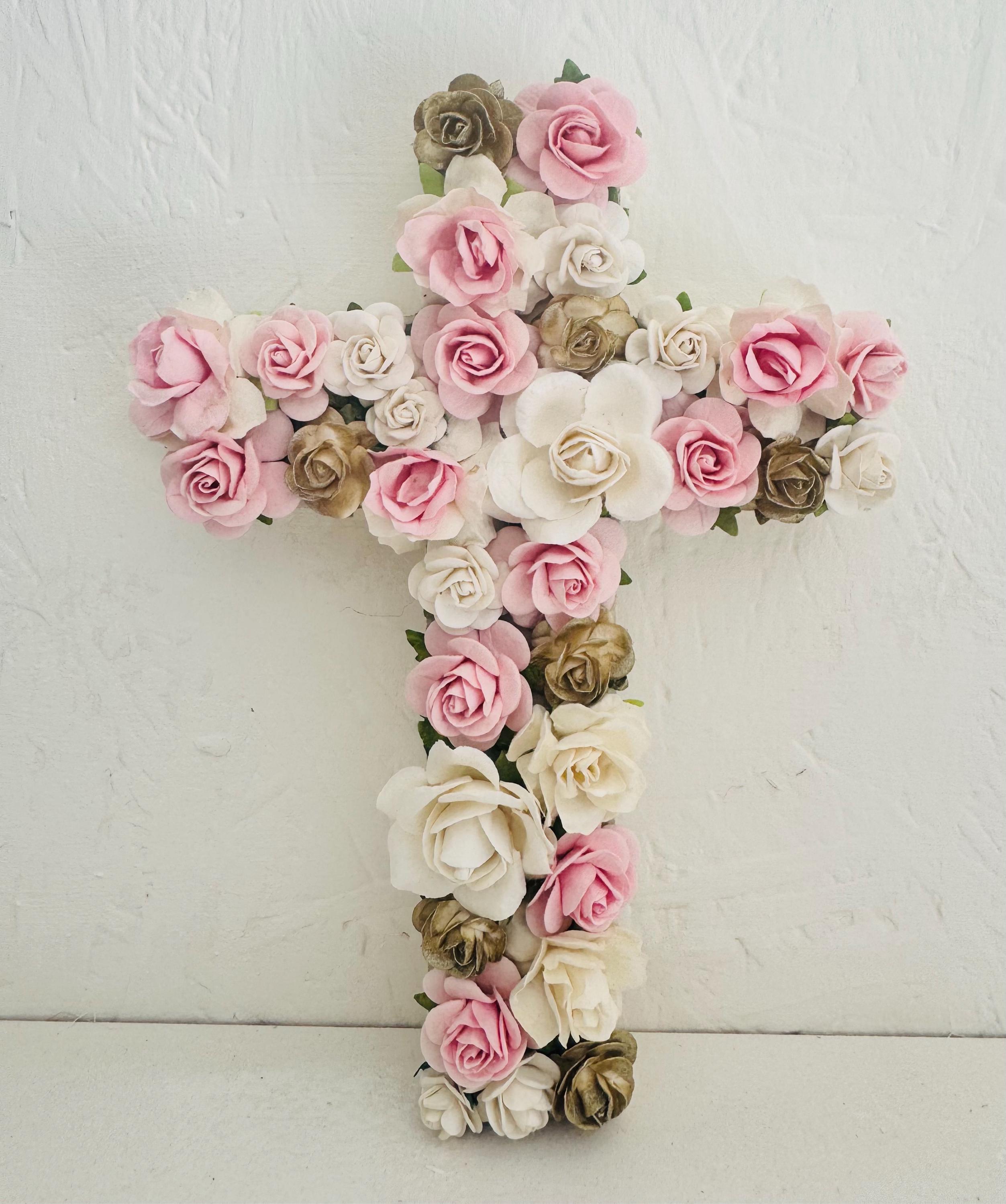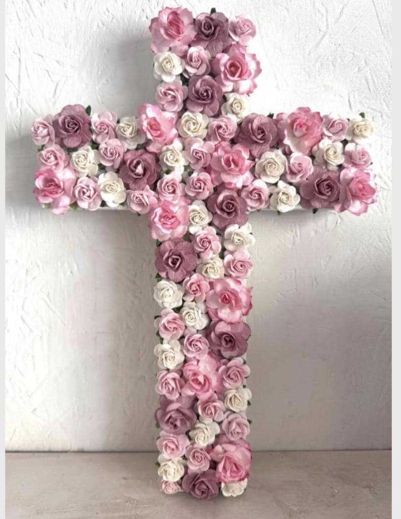 My flower crosses are the perfect gift for any baptism, christening or communion . It is the perfect art to finish any room in the house, whether a nursery, bedroom or living space a wooden cross brings a sense of prettiness and calm to a room. Crucifixes are perfect wall art for any nursery or bedroom who would like to add a hint of religious decor. My crosses are also a unique bereavement gift and centre piece for a funeral. A beautiful gift for someone who appreciates the beauty and spiritual meaning of a cross